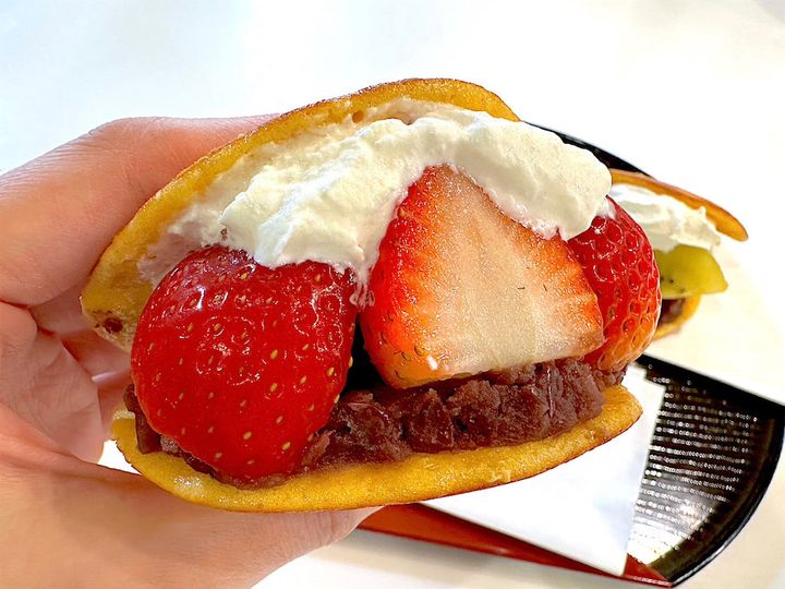 挟んだあんこと生クリームは、しっとりもちもちの生地にしっかり馴染み、相性抜群。