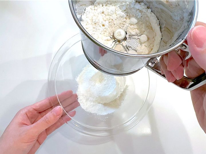 3.薄力粉は3回ほど振るう。