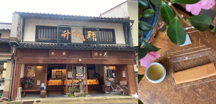 津和野銘菓である源氏巻の手焼き体験(※3月〜11月下旬)ができる「竹風軒」。源氏巻を食べやすくカットして個包装にした「源氏草子」もあるので、お土産にいかが?