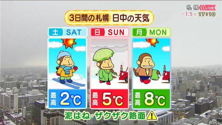 3日間の札幌です! 3月8日~10日の天気をもんすけでお伝えします!