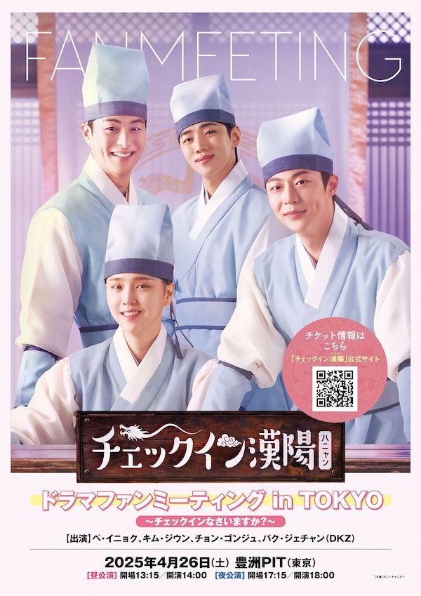 青春ロマンス時代劇ドラマ『チェックイン漢陽』のファンミーティングが、4月26日(土)に東京・豊洲PITで開催されることが決定した。