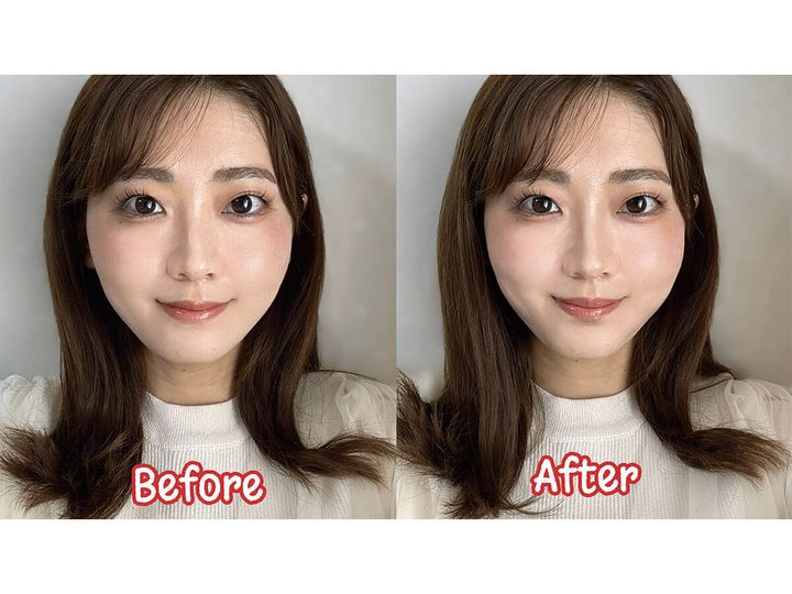 Beforeと比較すると、Afterは輪郭がスッキリして鼻筋が出ています。