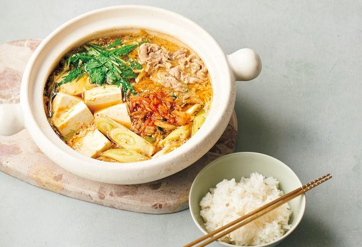 寒い季節、チゲが食べたいけどあの辛味がちょっと苦手という人必見! 豆乳を使うだけで、キムチの酸味と辛味をまろやかに中和。両者のいいとこ取りをした鍋は、スープまで飲み干したくなるおいしさ。