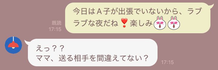 父親宛のLINEを、間違えて娘に送ってしまったという事例。