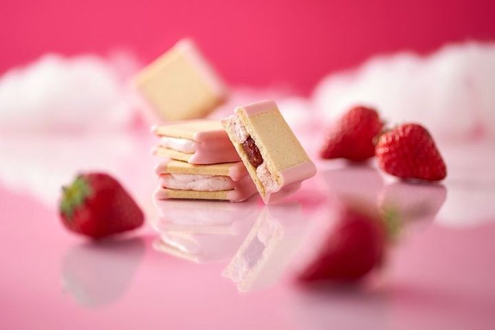 「プランタンベリーバターサンド」は北海道産いちごを使ったジャムと、バタークリームを薄焼きクッキーでサンドしていて、春の訪れを感じさせるような味わいを意識して作られています。