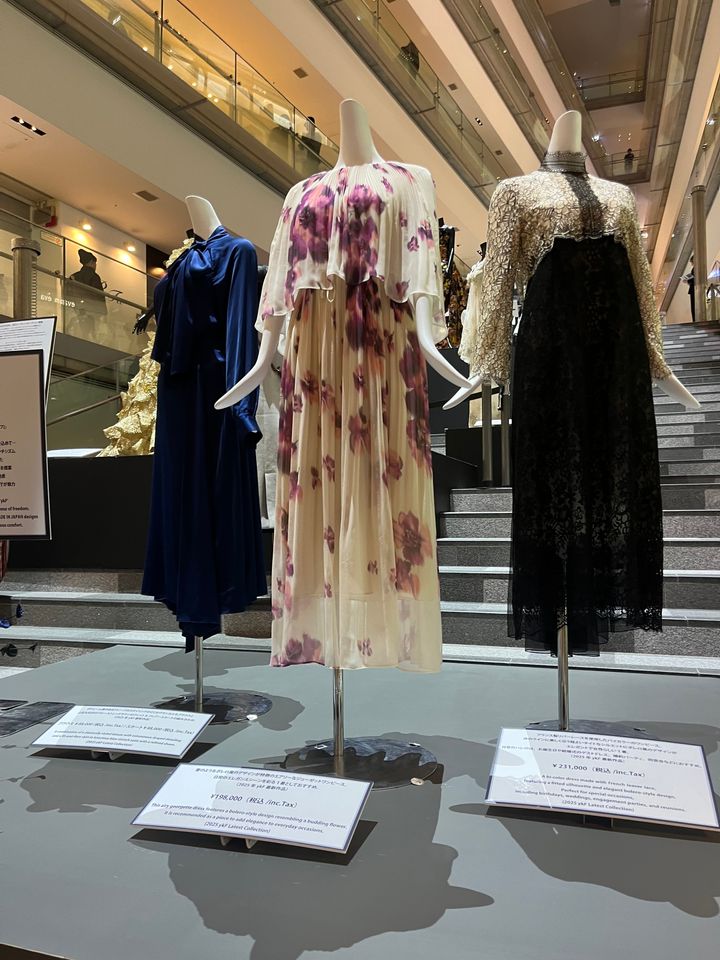 ブランドのドレスが華やかに並べられ、まるで映画のワンシーンのような美しさが広がっていました。