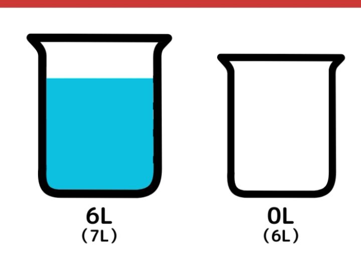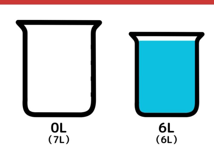 3. 【クイズ】たった4ステップで解ける!「7Lと6Lの容器で5L」をはかるには?