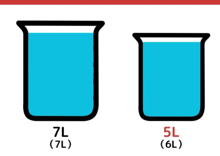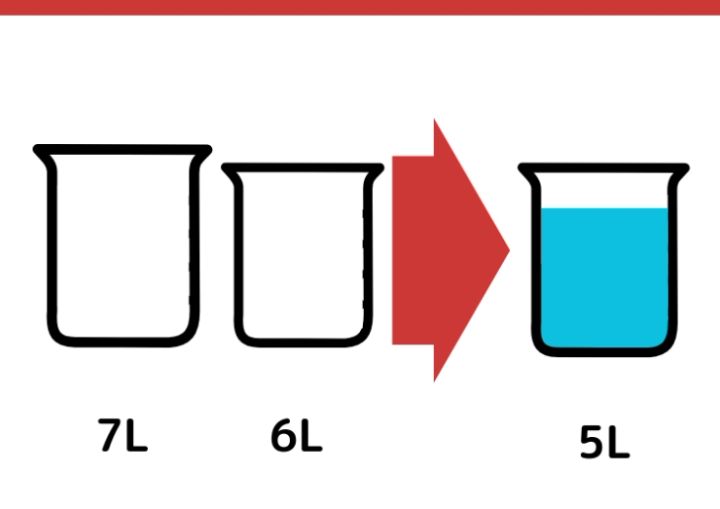 水がちょうど5L入る容器が手元にありません。7Lと6Lの容器を使って、ちょうど5Lの水を計る方法を考えてください。
