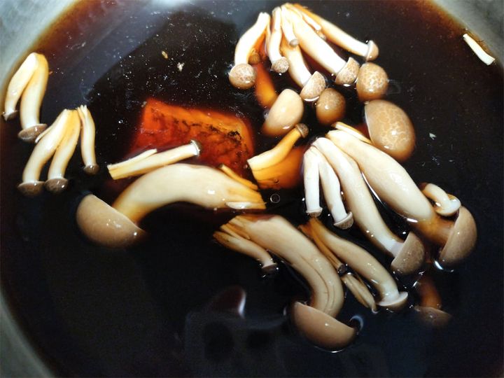 5. 4の鍋に鯛としめじを入れて中火のまま2分ほど煮ます。