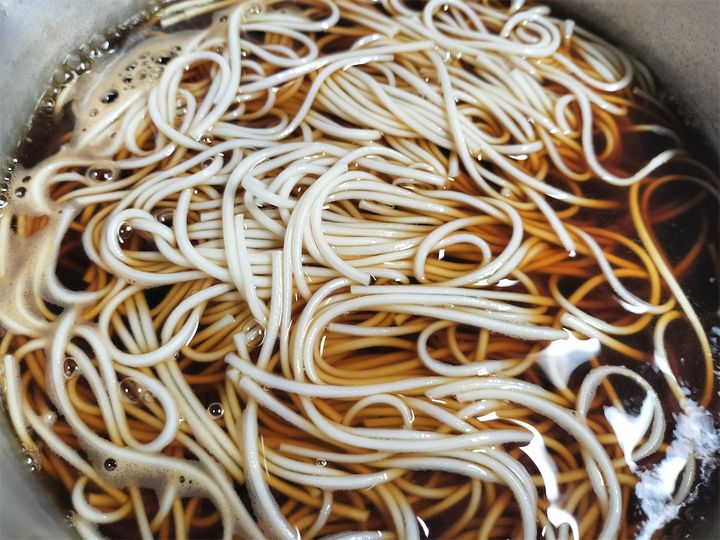 3. 2のお湯を捨てずにそうめんを表記時間通りに茹で、水で冷やします。