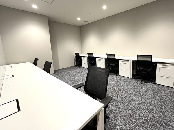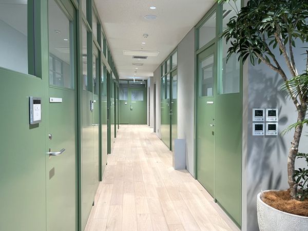 主に企業向けとなるプライベートエリアは、1名から最大7名までの個室オフィスが37室あり、法人登記もできて、1カ月単位で契約できます。エントランスは大宮サクラスクエアモールの2階にありますが、プライベートエリアは2階と3階にもあります。広さも机の数も色々なお部屋がありました。