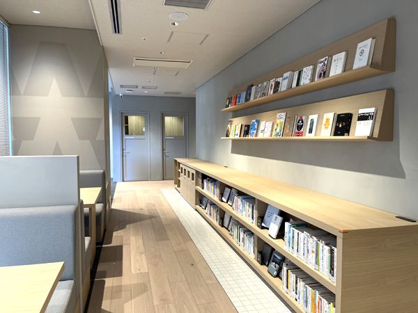 全ての利用者がアクセス可能なオープンエリアでは、書籍コーナーを備えた「ラウンジ」や、炭酸サーバーやカフェインコントロールが可能なコーヒー豆を導入した「カフェスペース」、複数人で座れるカウンターや個室っぽく仕切られた空間、ガラス戸で仕切ることもできるサロンスペースなど広々です。