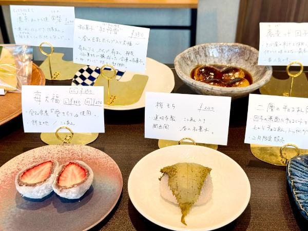 ほかにも、「苺大福」や「桜もち」など、春を感じる和菓子が並んでいました。