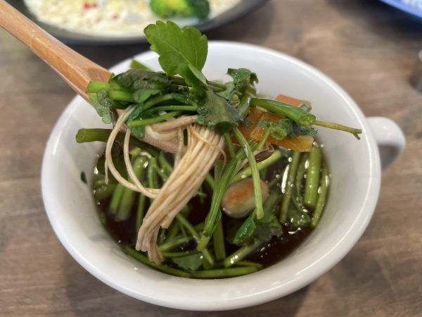 大きめのマグカップで提供頂いたのですが、昆布の出汁においしい地野菜の旨味がしみ込んだスープです。