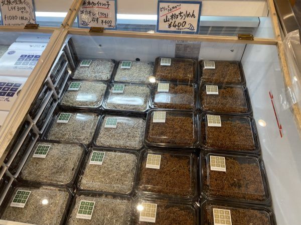 しらすは、山椒ちりめん等もあります。このサイズで400円!!破格値です。