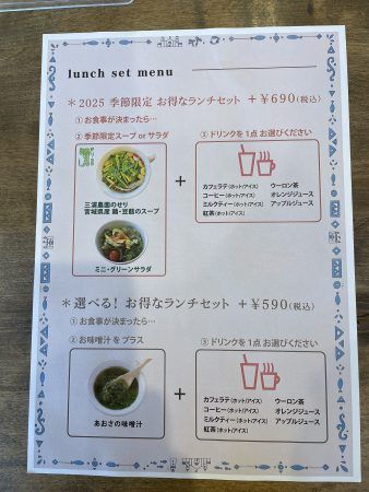 ランチセットメニューも発見! プラス690円で、スープまたはサラダ、そしてドリンクが付いています。