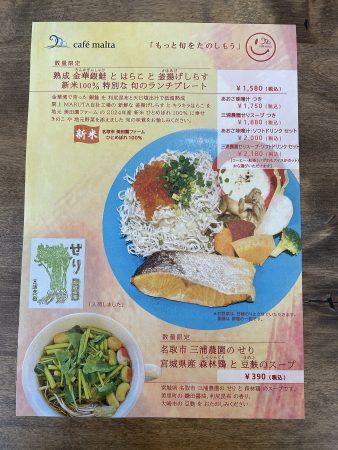 釜揚げしらすが追加し放題!せりのスープもたまらない【閖上カフェマルタ】