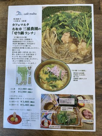 特別献立で、1日限定1組様だけですが、「せり鍋ランチ」2人前 2,980円というメニューもありましたよ。
