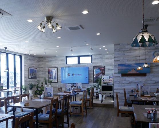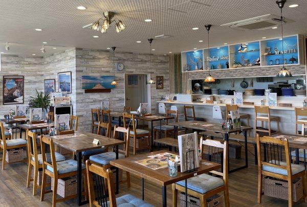 港街のリゾートホテルを思わせる広くておしゃれな店内