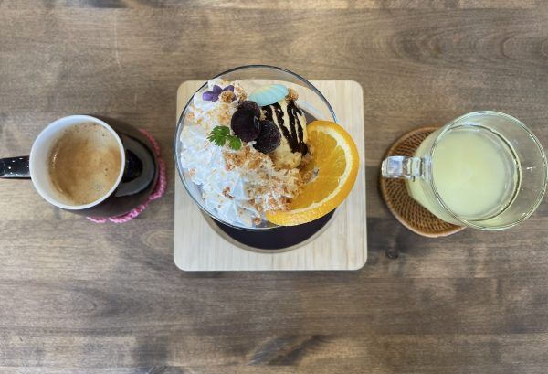ドリンク右は、数量限定の国産しょうが自家製シロップ×無ワックス愛媛産レモンホットジンジャーレモン520円。左は、イタリアンローストのホットコーヒー480円。