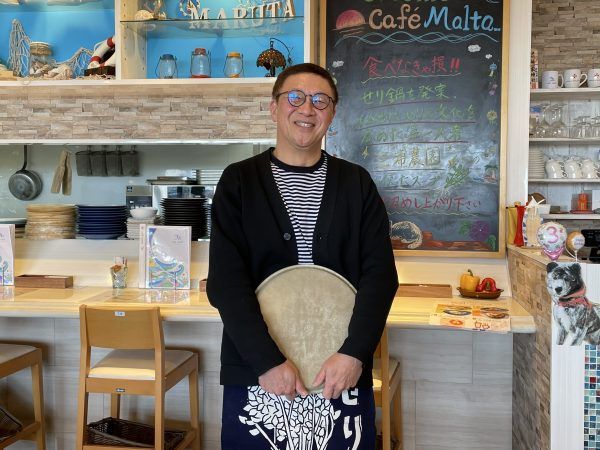 マルタカフェの武田さん。せりのエプロンがお似合いでした