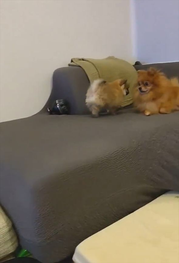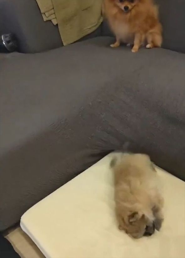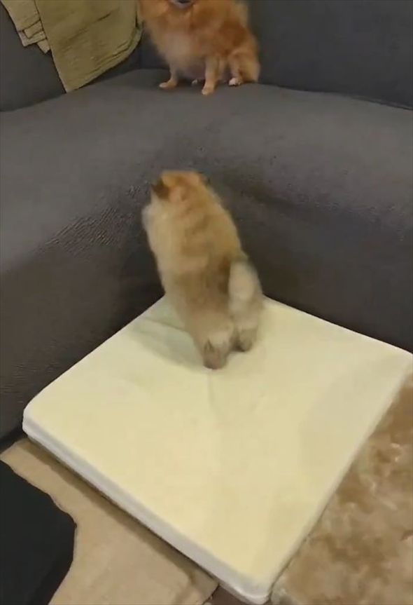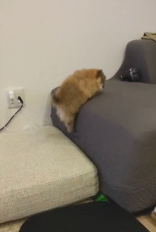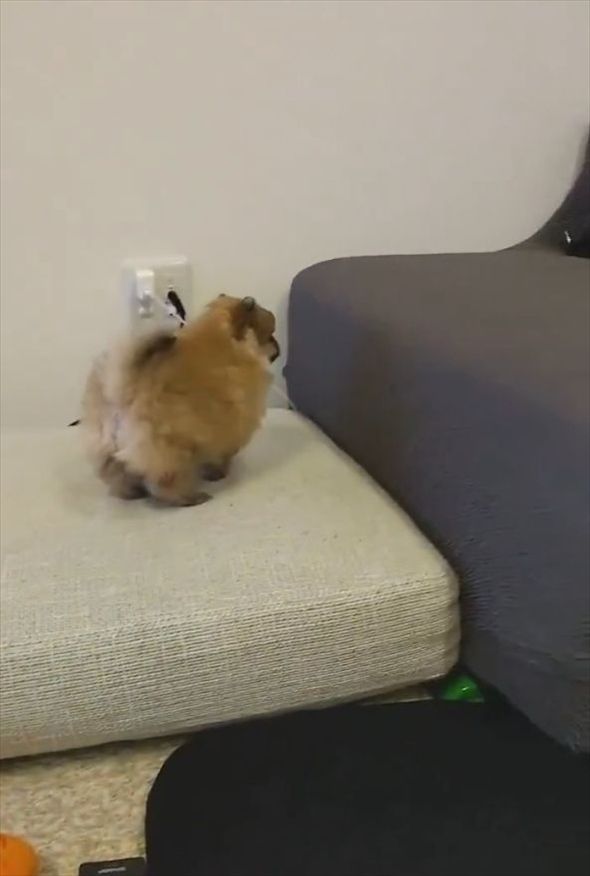 ソファの上にいるママのもとに向かいたいポメラニアンの子犬。 その奮闘する姿が反響を呼んでいます!
