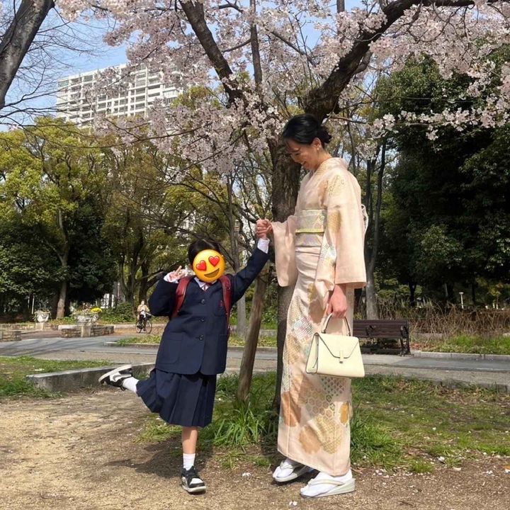 「ヴァン クリーフ&アーペルのジュエリーは結婚記念日や子どもを出産したタイミングなど節目で購入しています。マザーオブパールのリングは一昨年沖縄旅行に行った際に出会ったもの。手元が華やかになるので、入園式というハレの日にもぴったりでした」加嶋愛美さん・35歳(4歳の男の子、2歳の女の子ママ)