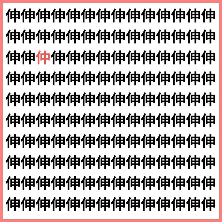 たくさんの「伸」の中に、1文字だけ違う漢字が混ざっています。