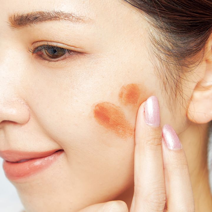 頰骨の下から外側に入れると、リフトアップ効果が。色は若々しい血色を与えるピーチやローズを。テクニックいらずで、みずみずしいハリ感も。