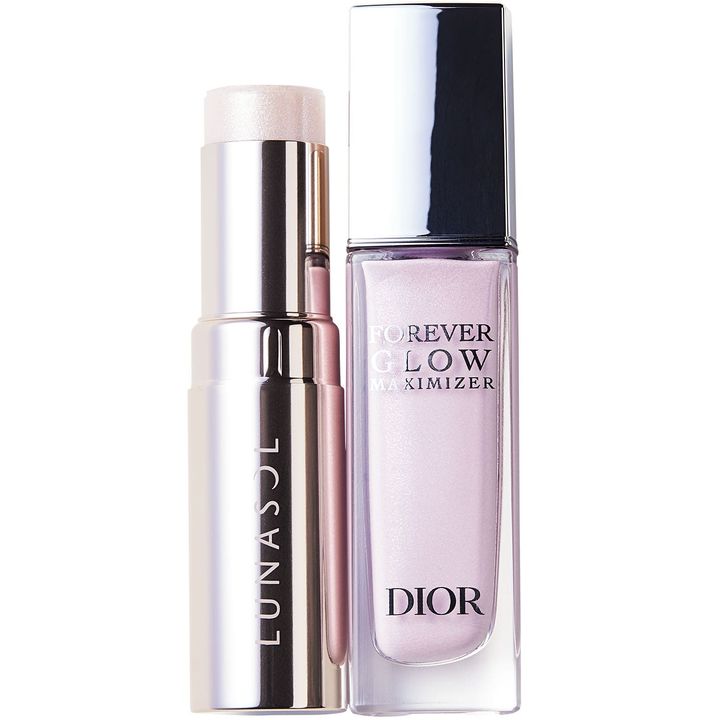 左:ルナソル ラディアントスティックN 02 ¥4,950 ※1月24日(金)発売(カネボウ化粧品)右:モデル使用色。ディオールスキン フォー エヴァー グロウ マキシマイザー 10 ¥5,940 ※数量限定発売(パルファン・クリスチャン・デ ィオール)