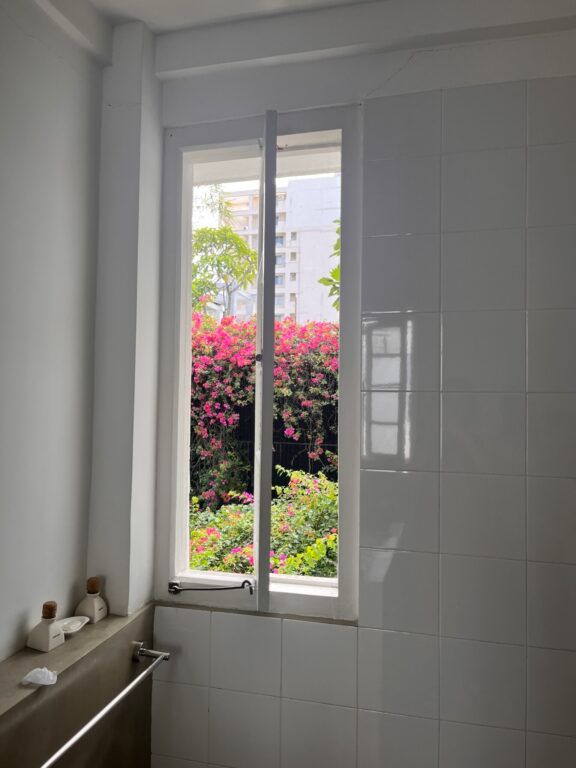 バスルームからも花々が見えます。確かこれはブーゲンビリア。裏手は小学校だそうで、元気に遊びまわる子どもたちの声が聞こえます。