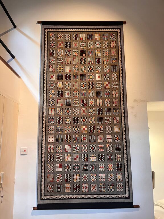 こちらがホテルの室内に飾ってあった〈ベア・フット〉の立派なタペストリー。