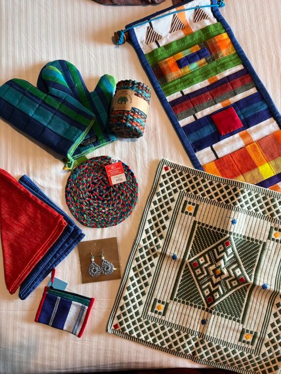 ミトンやクッションカバー、ランチョンマットなど、をお土産に。これでもかなり絞って選びました。