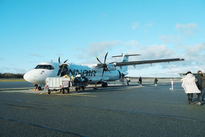 ヴァンター国際空港はヨーロッパ内のアクセスがいい。写真はラトビアの首都リーガ行きの小型機。1時間で到着でき、国内を移動するような感覚。
