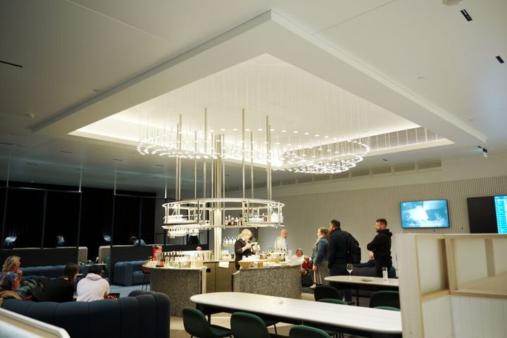 シェンゲン協定非加盟エリア(=日本線が発着するエリア)にあるビジネスラウンジ「Finnair Business Lounge」では、食事やアルコールを楽しめるくつろぎのスペース。仮眠ができるゆったりとした一人がけソファ、ワーキングスペースなど自由にいろいろな席や場所を利用でき、、これから始まる旅に向けてゆっくりと体を休めることができる(使用条件有り)。