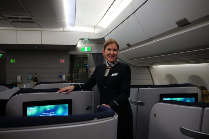 フィンエアーのCAはみなフレンドリー。長距離路線の機内を快適に過ごすことができるようサービスも丁寧。