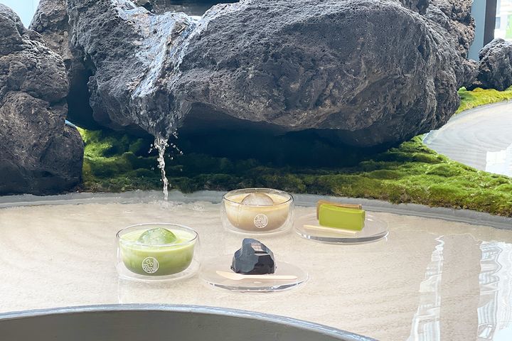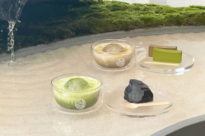 日本庭園風の店内にぴったりな、水に浮かぶスイーツ&ドリンクにも注目。