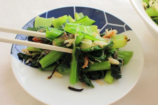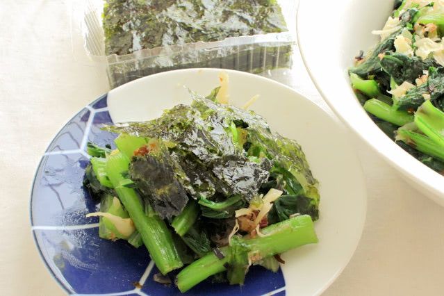 でも、食感にはシャキシャキとした小松菜らしさを感じ、水っぽくないので、しょうゆの旨味もしっかり含まれているよう。