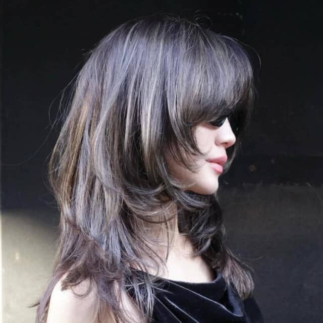 ベースカラーに2〜3トーン明るい色を部分的に入れることで、動きのあるたびに異なる表情を見せる奥行きのある髪色に。白髪が気になる部分こそ、あえてハイライトを効かせるのがポイントです。また、顔立ちをシャープに見せる効果も。しかも根元が伸びてきても境目が自然なため、メンテナンス間隔も延ばせるという実用的なメリットも兼ね備えています。