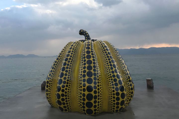 「訪れたのは7年前ですがアートスポットとして今でも強く記憶に残る場所。写真は復元前の「南瓜」で今となってはより思い出深い作品に。意図せず友人たちと草間彌生の作品配色ファッションになったのも結果よし。」(スタイリスト・三好 彩さん)