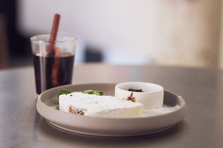 冬限定メニューのシュトーレンとホットワイン。食事前後の友達との時間を過ごすのはもちろん、おひとりさまでも入りやすい雰囲気なのでお茶感覚で立ち寄れる。ワインに合うフードも充実していて、グルメスポットとしての味わいも抜群。