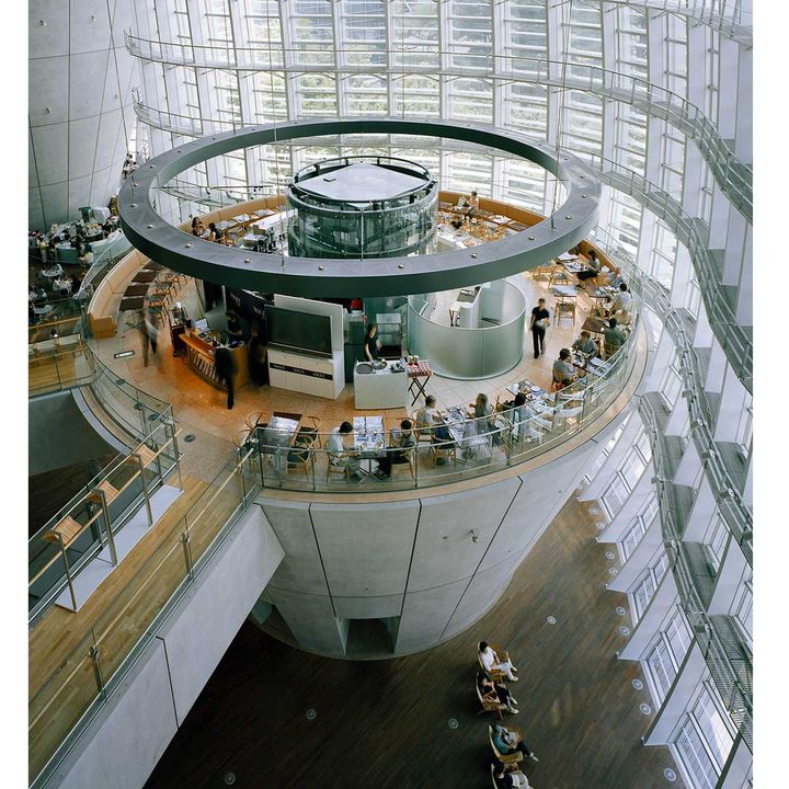 一日中過ごせるほど充実した館内。10を超える展覧会を同時並行で楽しめることは世界的に見ても珍しいほど。またカフェやレストラン、ミュージアムショップ、ライブラリーで時間を過ごすなど、まるでこの中が街であるかのように散策できるのが国立新美術館だけの魅力。2Fのカフェ「サロン・ド・テ ロンド」は円形のティールーム。宙に浮いたような設計は展示の余韻に浸るのにぴったり。ほかにも2カ所カフェがあり、飽きることなく利用できる。