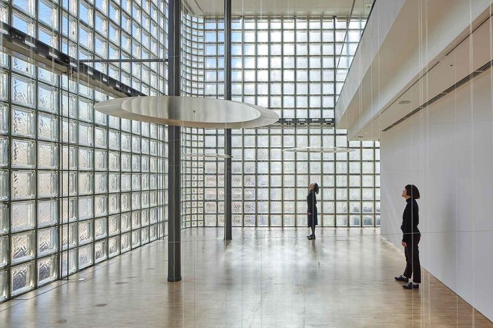 @銀座メゾンエルメス8〜9F。現代を生きるアーティストの創造や対話を毎年3〜4本の展覧会を通じて紹介。芸術や技術伝承、 環境問題、教育支援などを行うエルメス財団の活動のひとつ。ガラスブロックの壁から自然光が注ぎ込む特徴的な展示空間も必見。