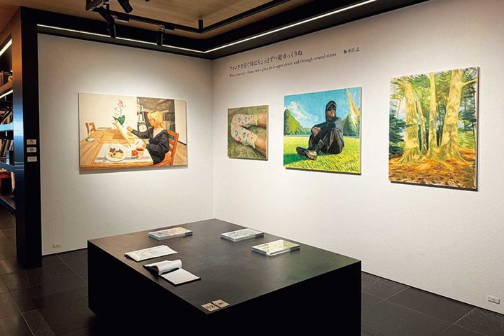 銀座 蔦屋書店は「アートのある暮らし」がコンセプト。書籍のほか、店内各所に展開されたアートを見て楽しめる。スターバックスに隣接する「アートウォール」では、若手作家を中心に注目のアーティストの作品を紹介。※写真は、梅本匡志 個展。現在は展示期間終了。展示問い合わせ先:HIRO OKAMOTO