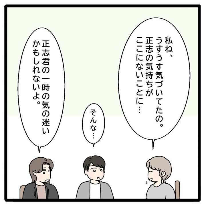 そして、「私ね、うすうす気づいてたの。正志の気持ちがここにないことに・・」理恵さんがそう言うと、「そんな・・」と裕二さん、そして「正志くんの一時の気の迷いかもしれないよ」と理恵さんを励ます美沙さん。