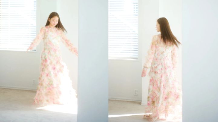 消えちゃいそうなほど繊細なワンピに、目が離せない。ふんわりと広がるスカートが可愛らしい