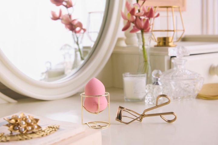 最後はメイクツール。1つに絞れず2種ご紹介。リリミュウは、用途違いの6種のブラシといった、メイクツールも豊富。そしてどれも手に取りやすい価格ながら、グッと簡単に美しいメイクの仕上がりを叶えてくれるんです。特に個人的にオススメなのが、アイラッシュカーラーとパフ。アイラッシュカーラーは、しっかり根元からまつ毛が挟めるカーブで、力を入れずともクイッと上げてくれる設計なんです。マットなゴールドという装いも好み。パフは乾いたままでも水に濡らしても使える2way仕様。小鼻や目の下といった細かな部分にもフィットする形状と、握りやすさが◎。また、意外と置き場に困るパフを立てて収納できるスタンドもお見事。 使用後にサッと洗って乾かすのにピッタリです。