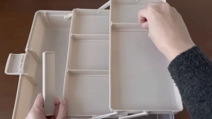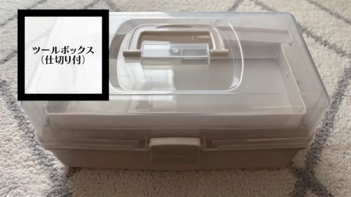 さらに可動式の仕切りが4つ付属でついていて、上2段の好きな位置に設置可能。ボックスの上部には持ち手もついているので、持ち運びもラクラクです♪