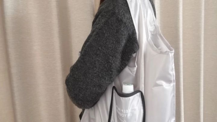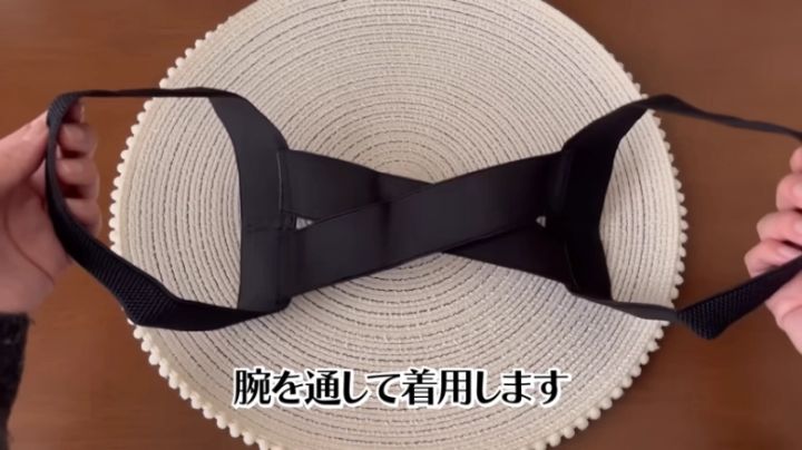 輪っかに腕を通し、クロス部分が背中にくるよう装着します。