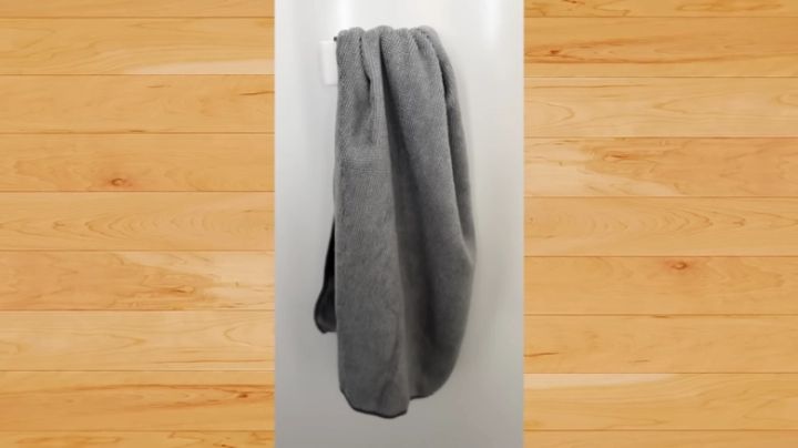 横にすると、タオルハンガーとしても活用可能。スプレーボトルをかけるのもおすすめです◎